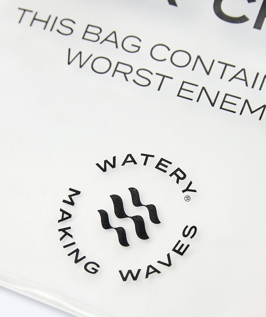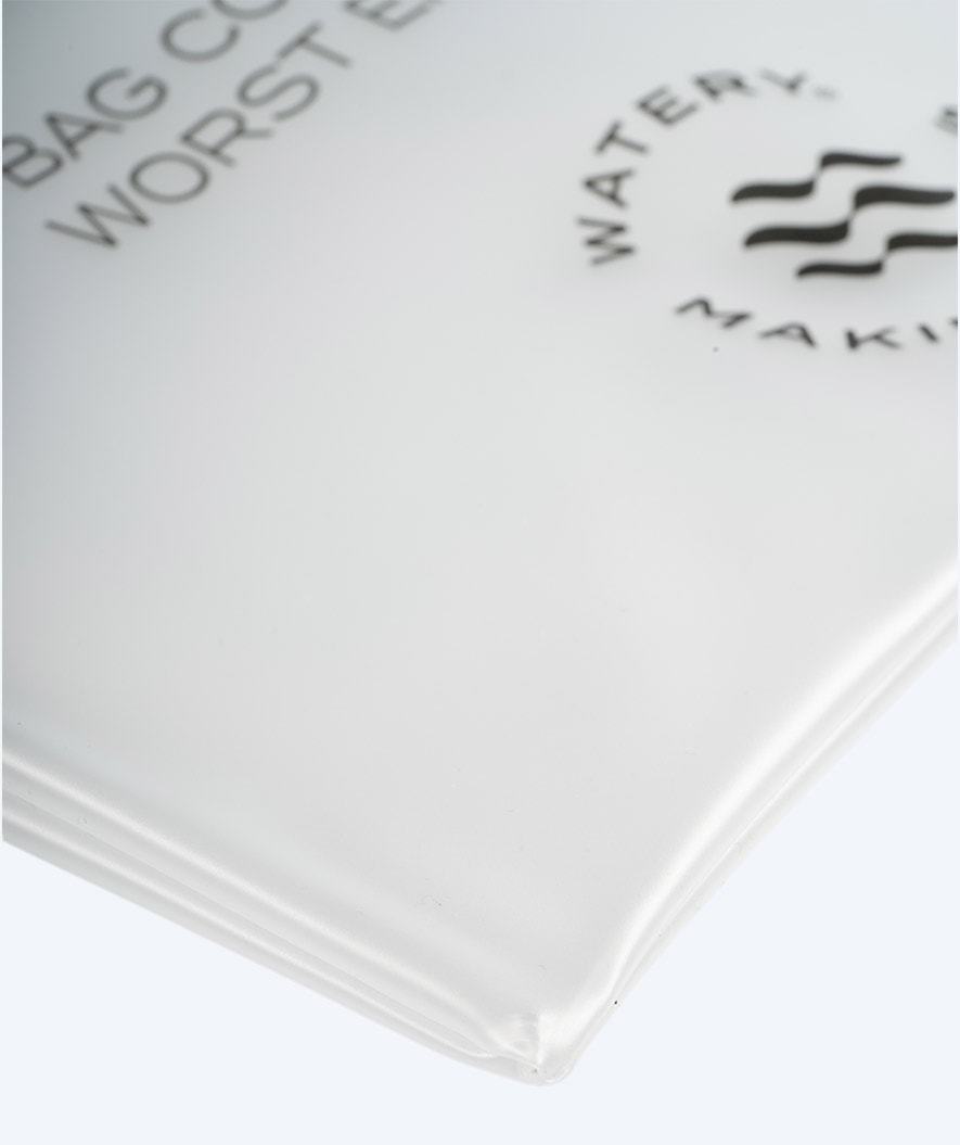 The bag is made of a frosted PVC that gives a smooth and semi-transparent surface. In addition, the ends are reinforced, which ensures that no water can leave the bag once it is closed.