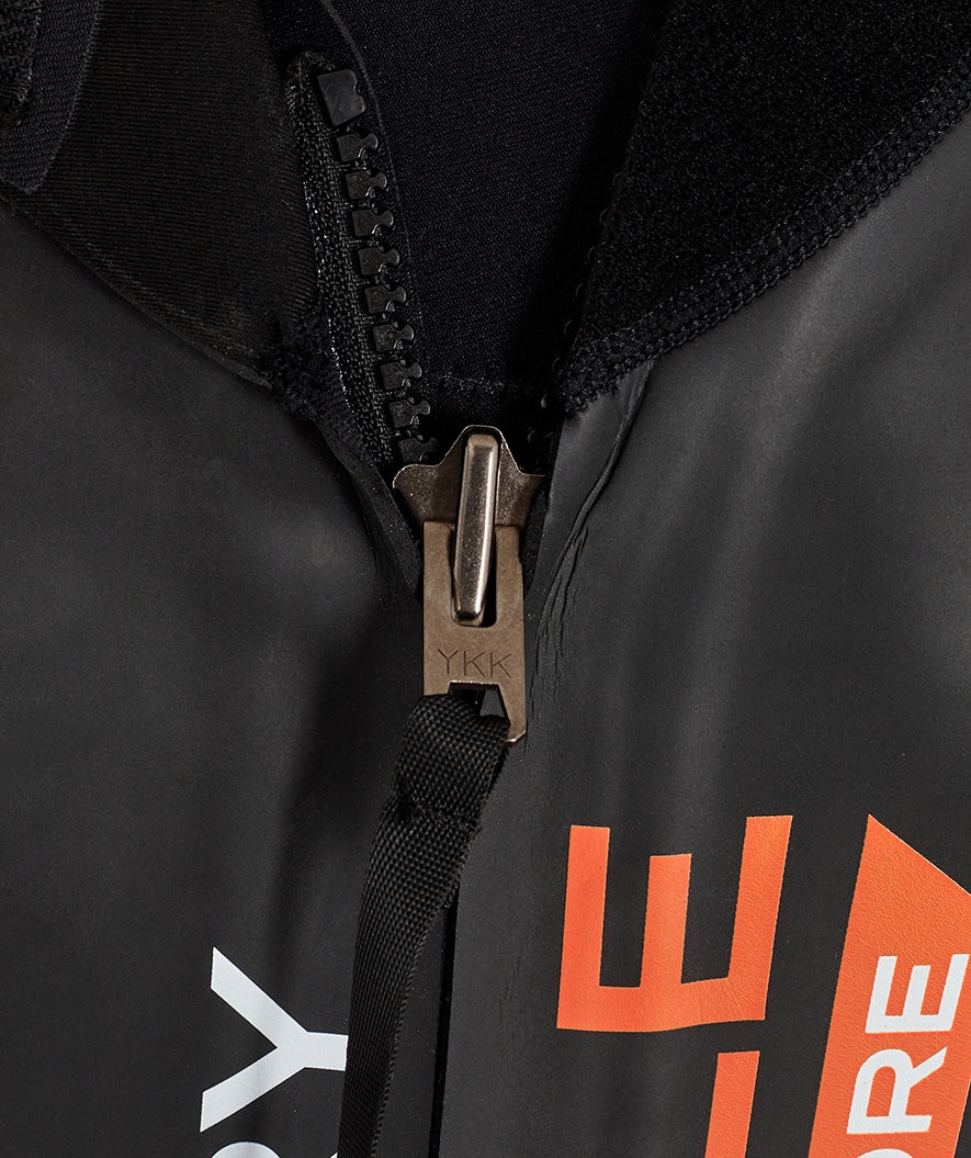 The openings at the neck, wrists, and ankles are made with special no-leak panels with a built-in lighter elastic, so that the wetsuit does not fill up with cold water inside. To still avoid the typical discomfort in these areas, the panels also only consist of one layer. The neckline is also lowered so that it aligns more naturally around the neck and closes perfectly with the curved Velcro closure at the back, so you avoid unpleasant chafing wounds on the neck.